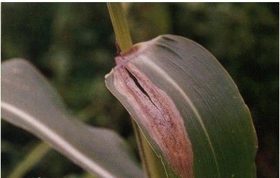 癥狀 主要發(fā)生在比較冷涼的深丘區(qū)和山區(qū),可危害所有玉米類型。 病菌主要危害葉片,也可侵染葉鞘和苞葉。植株感病后,常使葉片干枯,重者全株枯死,產(chǎn)量失收,輕者生長不良,造成減產(chǎn)。株高70~100厘米時(shí),先由基部葉片發(fā)病,漸及上部,嚴(yán)重時(shí)能遍及全株。發(fā)病初期,葉片上出現(xiàn)水漬狀青灰色或灰綠色斑點(diǎn),然后沿葉脈向兩端擴(kuò)展,形成棱形或長紡錘形大斑。斑中央淡褐色,邊緣暗褐色。病斑寬可達(dá)1~2厘米,長15~20厘米。天氣潮濕時(shí),病斑上可產(chǎn)生黑灰色霉?fàn)钗铮ǚ稚咦樱0l(fā)病嚴(yán)重時(shí),病斑增多,連成大片,整株枯死。
