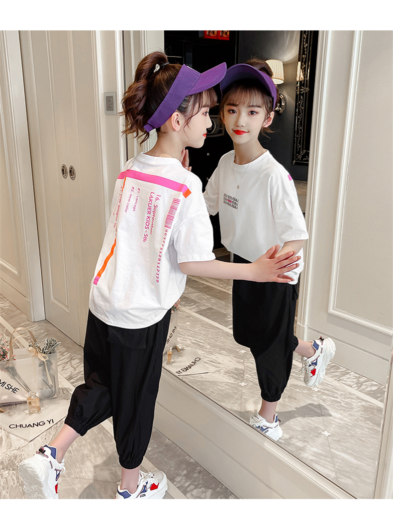 女童夏裝網紅套裝洋氣2021新款韓版時髦大童裝兒童短袖休閑兩件套