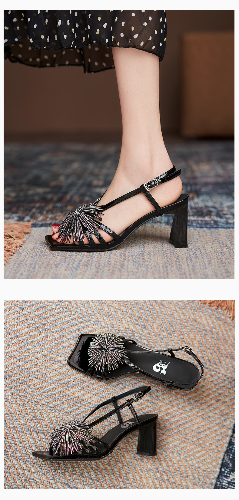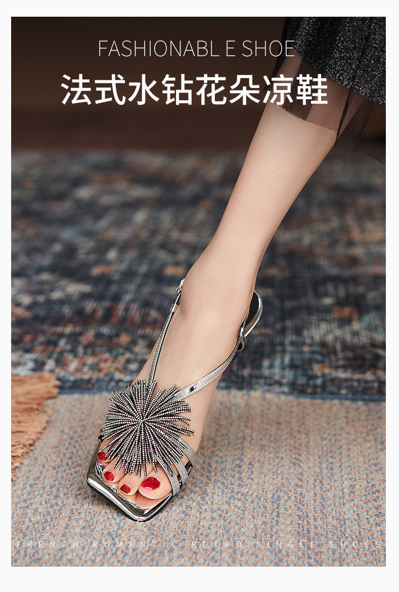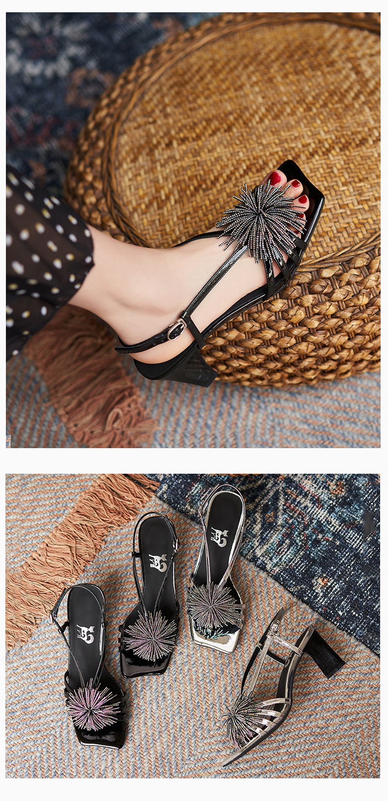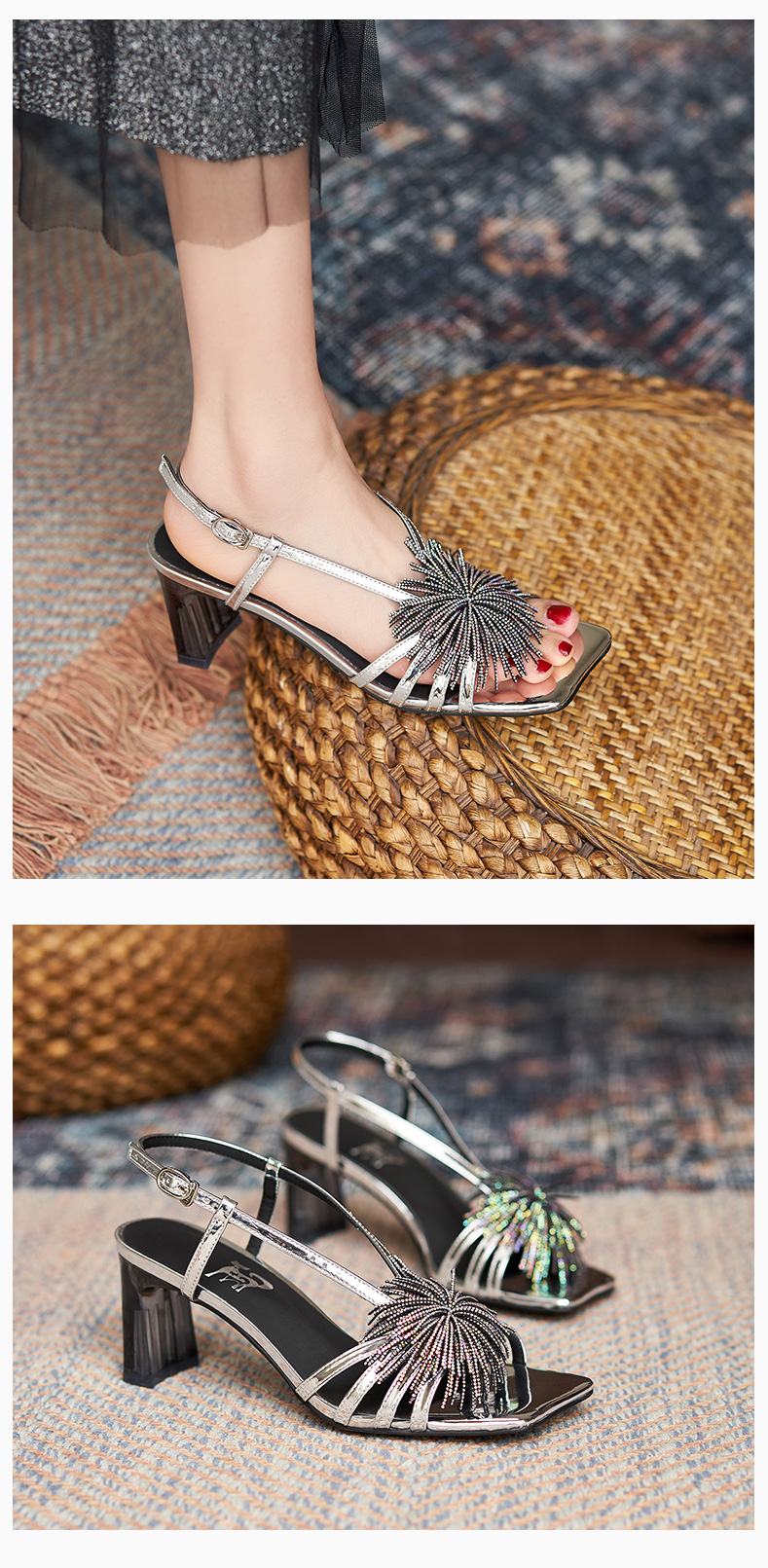 高跟涼鞋女2021年夏季新款仙女風(fēng)氣質(zhì)法式一字帶粗跟露趾時(shí)裝涼鞋