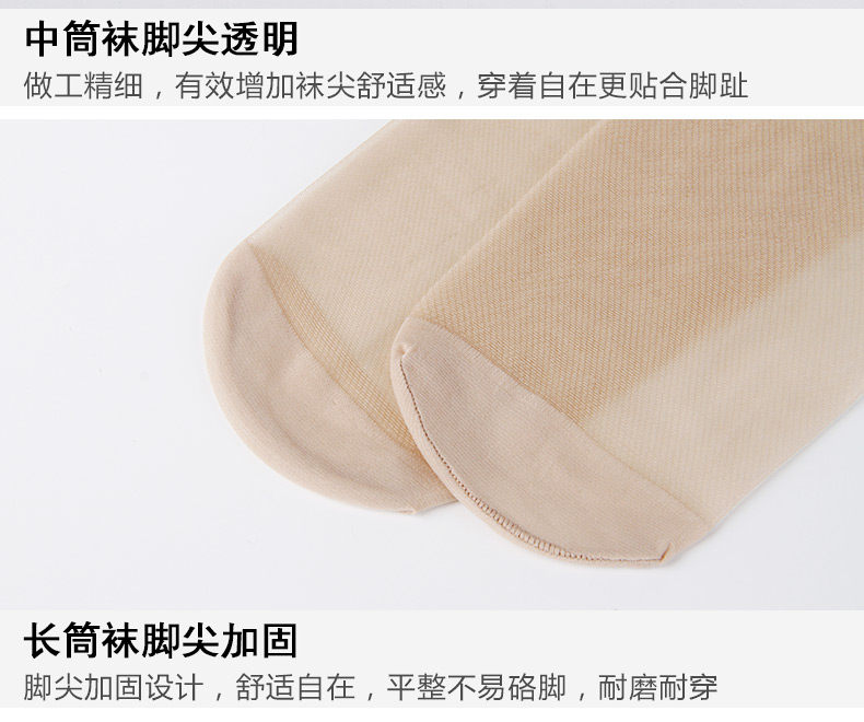 浪莎絲襪女 夏天腳尖透明中筒襪 防勾絲過(guò)膝長(zhǎng)筒襪薄款小腿襪